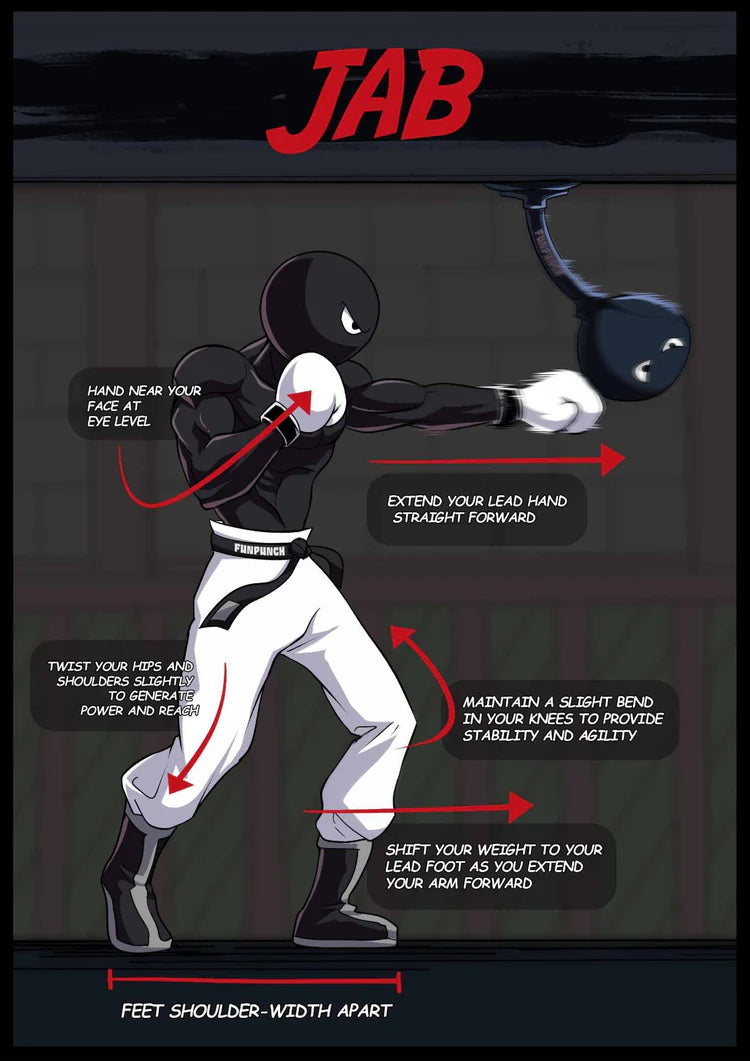 This is your first line of attack — a test of their reflex, their courage, theirwillpower. You don’t ask for permission with a jab — you demand attention. Snap your lead hand straight out, no flare, no wind-up. Just laser focus and violent intent.