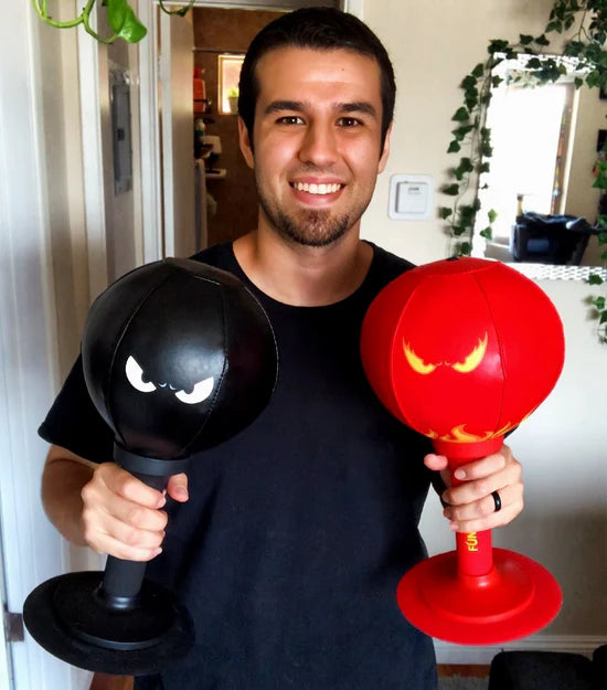 The Rage-Bag is compact but tough. It weighs just 0.7 kg, stands 40 cm tall, and is 20 cm wide. Perfect size to fit on any desk while still packing enough punch to take your hits.
